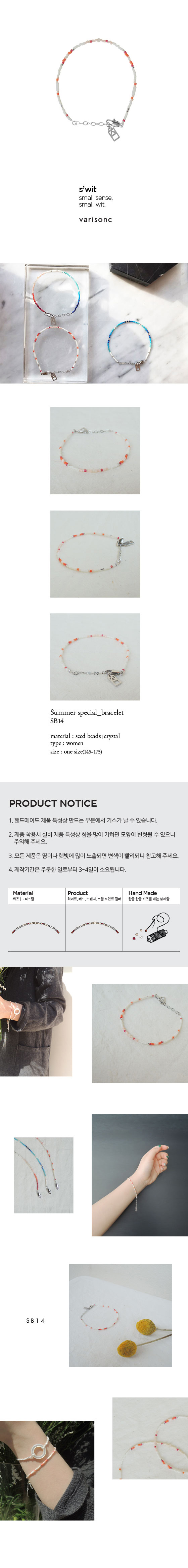 | Summer Special 팔찌는 가벼운 착용감으로 더운 여름에도 부담스럽지 않고 데일리 아이템으로도 손색이 없습니다. 화이트 비즈와 레드, 오렌지, 코랄 포인트 컬러로 더욱 시원해 보이는 팔목을 드러낼 수 있는 데일리 팔찌입니다. [사이즈 안내] 팔목 둘레 14.5~17.5cm 내에서 길이조절이 가능한 제품입니다 [A/S 안내] - 구매일 이후 3개월 동안 제품 하자의 경우 무상 A/S 해드리며 추가의 재료가 필요한 경우에는 수선비가 발생할 수 있습니다. - 단, 소재 특성 상 제품 하자가 아닌 고객 부주의로 인한 경우에는 A/S가 어려울 수 있으니 양해 부탁드립니다. - 수선 제품 왕복배송비는 고객 부담입니다. [교환 및 배송 안내] - 제작기간은 주문일로부터 3~4일이 소요됩니다. (영업일 기준) - 베리송크의 모든 제품은 주문제작상품으로 교환 및 환불이 어려우니 신중한 구매 부탁드립니다. - 제품 하자 시에는 동일한 제품으로 교환 가능하며, 받으신 포장상태 그대로 반송 부탁드립니다. |