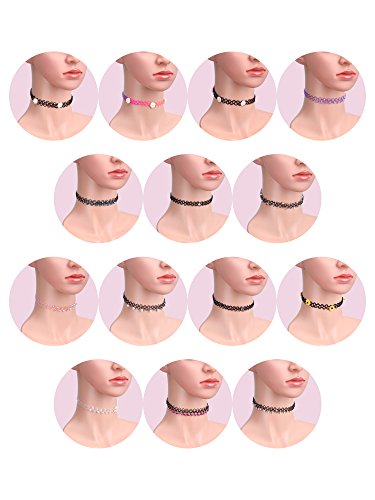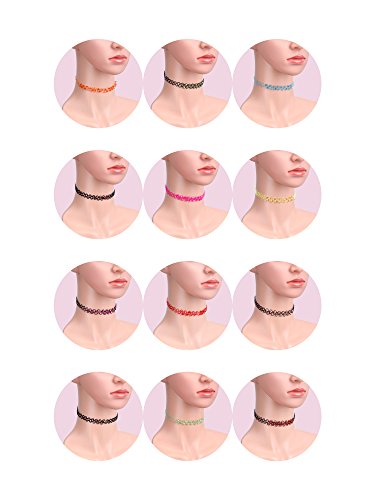 -. Feature : Tattoo choker dimensions: necklace length is about 10 inch/ 25.4 cm, stretching up to 18 inch/ 45 cm approximately, necklace height is 0.4 inch/ 1.2 cm / Colorful and various embellishments: mix chokers includes rainbow, neon and black color, with flowers, crystal beads and imitation pearls through on the plastic strings / Stretchy and adjustable: made of plastic, comfortable to wear, stretchy length fit most people necks, easy to pull over your head on to the neck / Multiple styles: the choker set contains single lined and double lined crystal clear beads, imitation pearls necklaces, providing you abundant choices for your outfits and wearing styles / 26 Fashionable chokers: come with 26 x stretch choker with different style, suitable gift for lady, women, girl; Fit occasions such as night club, masquerade party, etc.