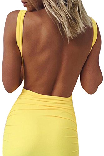 Meenew Women's Sexy Beach Sleeveless Ruched Tank Backless Bodycon Midi Dress S:Waist:24.41" Hip:31.50" Length:30.71"