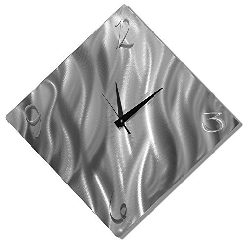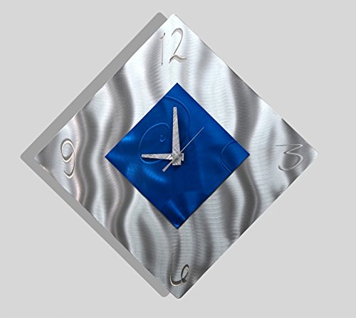 This unique wall clock measures 17 in x 17 in x 2 in (43.18cm x 43.18cm x 5.08cm ) AS A DIAMOND - each side measures 12 in x 12 in (30.48 cm x 30.48 cm). Each piece is handmade with precision, is signed by American artist Jon Allen and includes a certificate of authenticity.