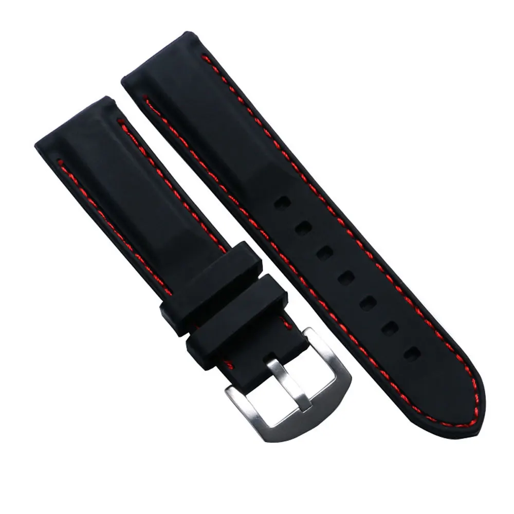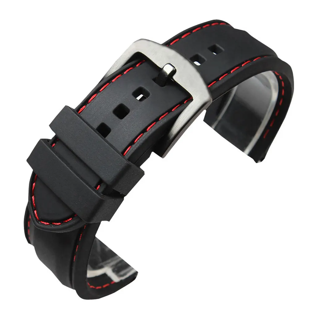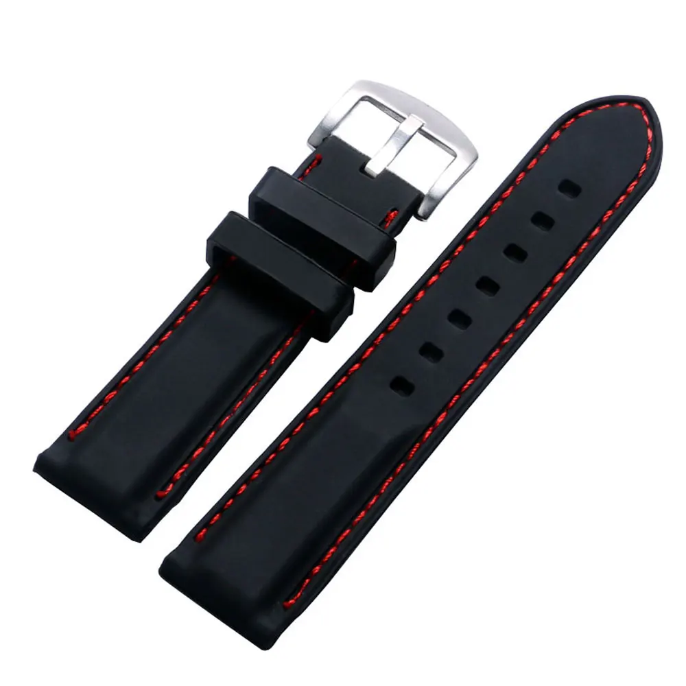 | [해외]10 개 22 미리메터 24 미리메터 블랙 실리콘 시계 스트랩 밴드 레드 라인 바느질 팔찌 고무 다이빙 방수 스포츠 무료 배송 |