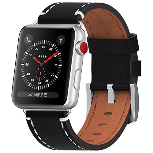 -. Title : Apple Watch Band,38mm iWatch Genuine Leather iwatch Strap Replacement Band with Silver Stainless Metal Clasp for Apple Watch Apple Watch Series 1&2&3 Sport Sport and Edition (Black)