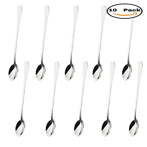 Mydio 10 Pack 7.5 Inch Stainless Steel Long Handle Spoons,for Ice Cream Spoons Tea,Coffee,Milkshakes,ice coffee,Set of 10