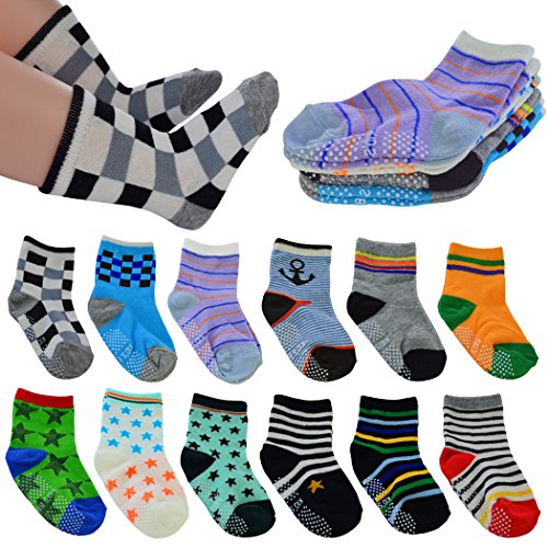 Studio : Lystaii Publisher : Lystaii Binding : Baby Product Product Description Package quantity: 12 pairs; Color: Random color,Cheaper by the dozen. Great gifts for baby. Material: Made of breathable Cotton, Suitable thickness for all seasons.Made of durable material, so they will last through a lot of wear. Size : Good elasticity, sole length : 3.5-4.7 inch / 9-12cm. No stretch is 3.5 inches, stretching to 4.7 inches. Suitable for 1-3 years old (12-36 months) baby to wear. Tips : 1-3 years old is Recommended Age, please refer to the length of specific. Because different baby feet size is different, so there will be some errors in size. NON-SKID DESIGN Breathable cotton feels soft against even the most sensitive baby's skin. Anti-slip design for infant baby to wear at home. Anti-slip socks is the protector of your child. Have good elastic - very practical for the rapid growth in babies.