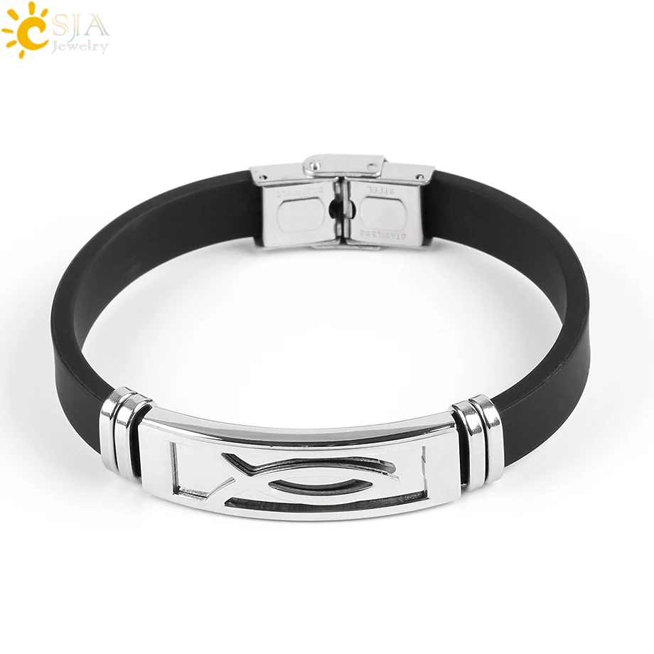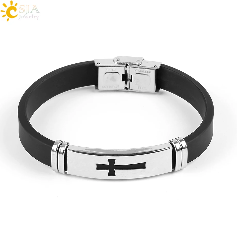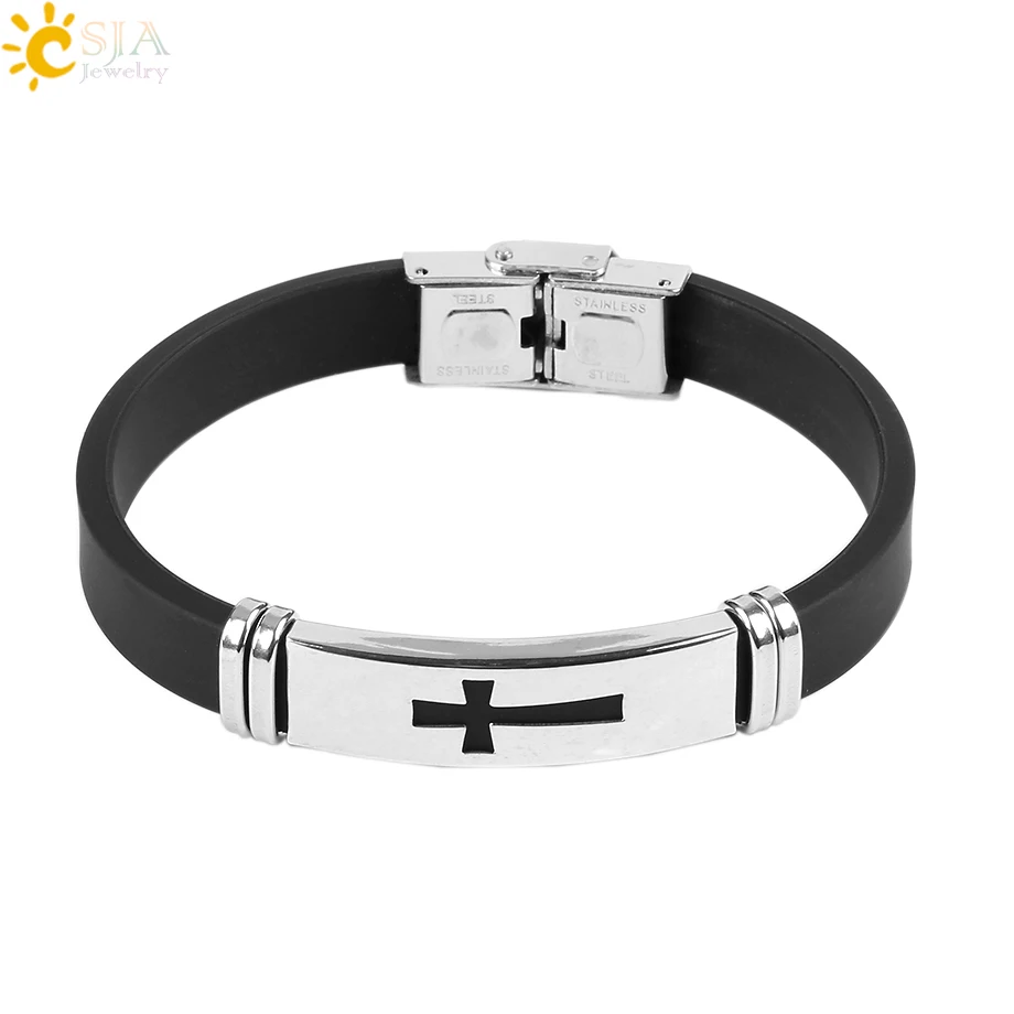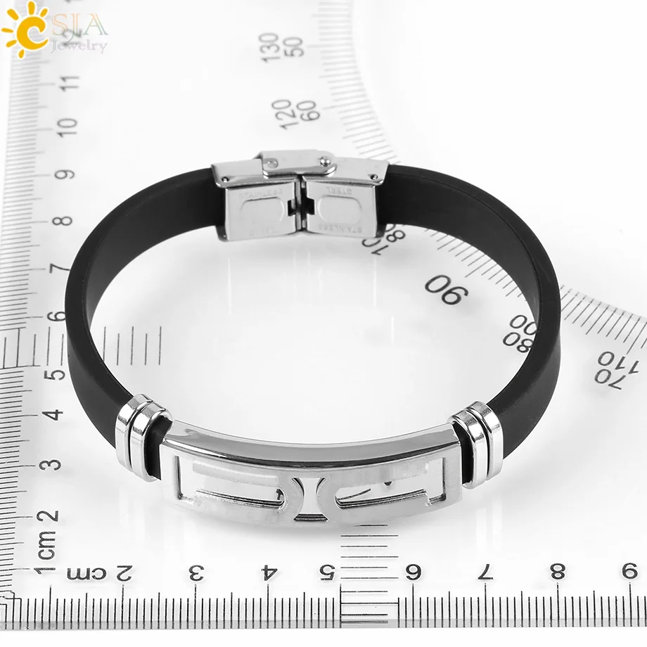 Product Name:Laser Carved Stainless Steel Charm Silicone Bracelets Jewelry