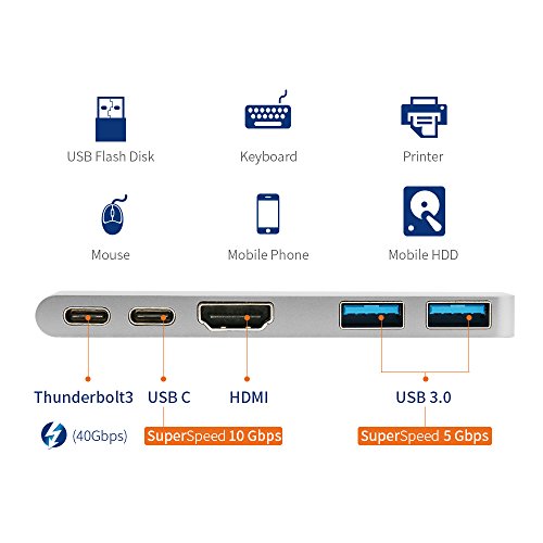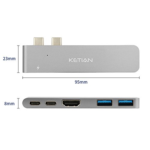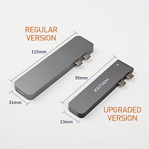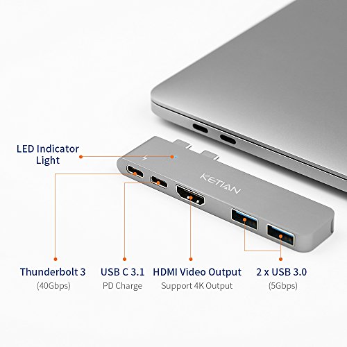 Ketian Hub Most Compact and Fastest (50Gb/s) Hub specifically designed for 2017/2016 MacBook Pro, compatible with both 13" and 15" models. Expand the two USB-C ports on MacBook Pro into 5 ports.