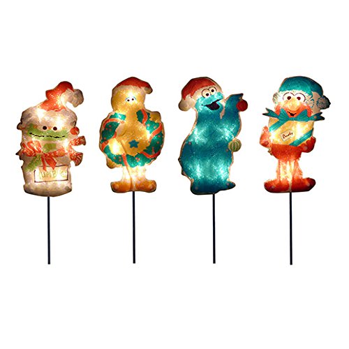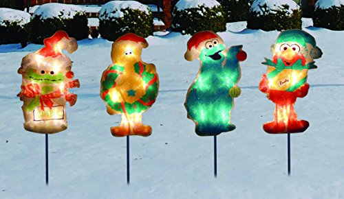 productworks 8-Inch Pre-Lit Sesame Street Christmas Pathway Markers (Set of 4)