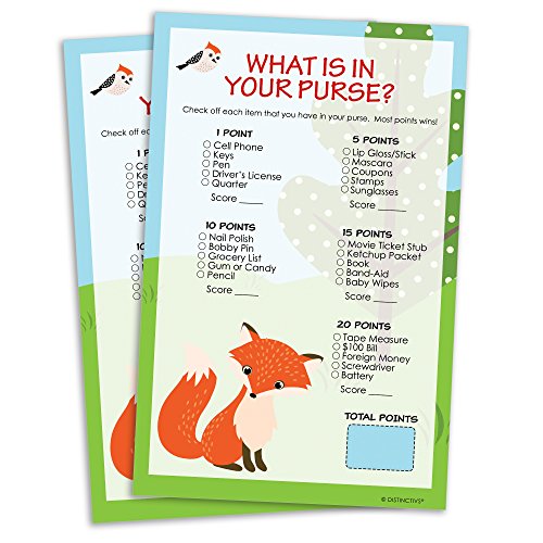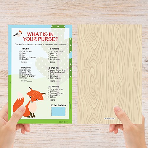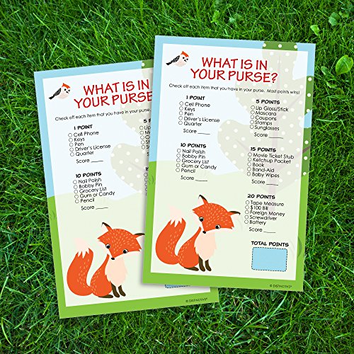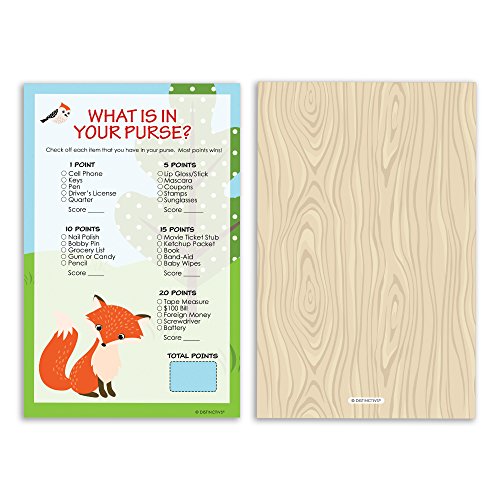 Woodland Animals Baby Shower Game - What's In Your Purse (Set of 20)