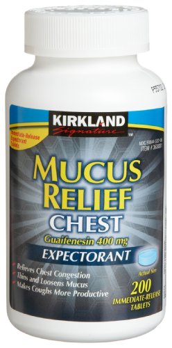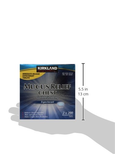 -. Title : Kirkland Signature Mucus Relief Chest Expectorant (Guaifenesin 400 Mg), 2 bottles of 200-Count Immediate-Release Tablets