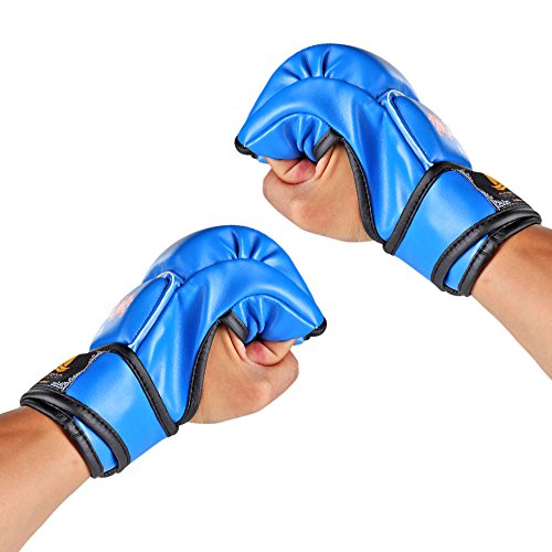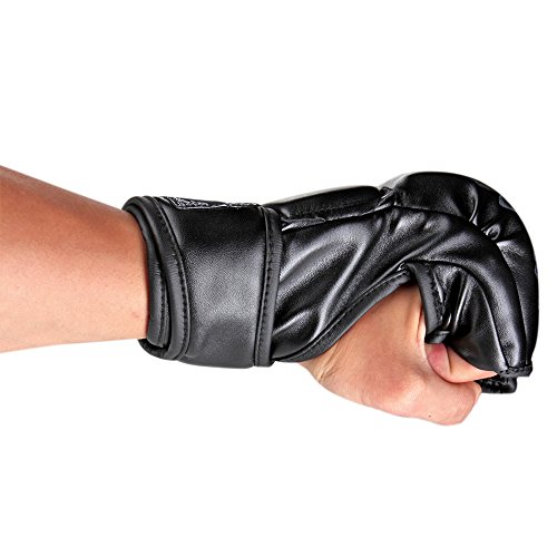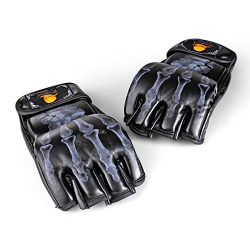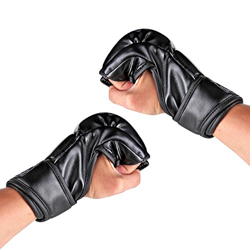 -. Binding : Misc. -. Brand : Flexzion -. Feature : Made of high-quality durable PU leather, durable for long-term use / They can give you optimal striking protection in the training and competition / They are indispensable appliances for daily training / Full wrist wrap strap provides superior wrist support and allows for a more customizable fit / These gloves are optimal for grappling and striking in both training and competition -. Label : Flexzion -. Manufacturer : Flexzion -. ProductGroup : Sports -. ProductTypeName : SPORTING_GOODS -. Publisher : Flexzion -. Studio : Flexzion -. Title : Flexzion Half Finger Boxing Gloves - Grappling MMA Muay Thai UFC Sparring Punch Ultimate Mitts Sanda Fighting Training Sandbag Equipment Pair for Adult Men
