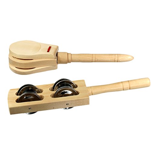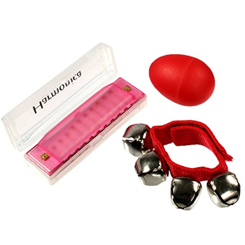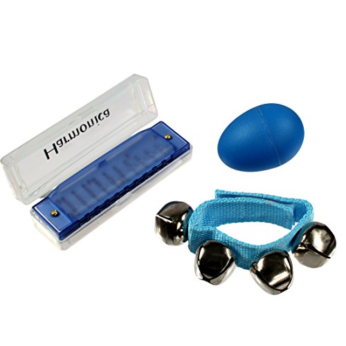 -. Feature : Includes 1 harmonica, 1 tambourine(6"), 1 wooden handle castanets, 1 tambourine jingle stick, 2 wrist bells, 2 plastic castanets and 2 egg shakers / Easy storage - Comes with a drawstring pouch for easy storage / Suitable size for preschool and early elementary children / Let kids participate and enjoy fun, creative musical movements at an early age / Great for both individual and group play
