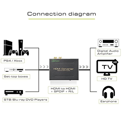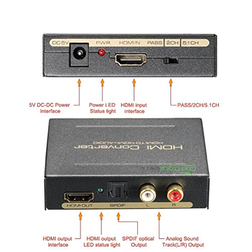 CoolDigital HDMI Extractor Splitter HDMI to HDMI + Optical SPDIF + RCA L / R Stereo Audio Video Splitter Converter (HDMI input,HDMI+ Toslink/Analog Audio output)-Include AC Adapter