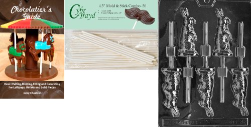 Cybrtrayd 'Sitting Bunny Lolly' Easter Chocolate Candy Mold with 50 4.5-Inch Lollipop Sticks and Chocolatier's Guide