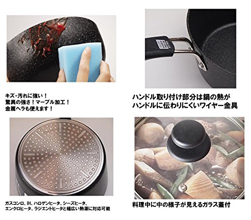 [해외]PEARL METAL 펄 금속 프리미엄 대리석 내면 4층+외면 3층 대리석 가공 IH대응 유리 뚜껑부 양손냄비 24 cm H-4239