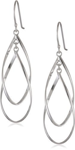 Sterling Silver Double Elongated-Oval Twist French Wire Earrings