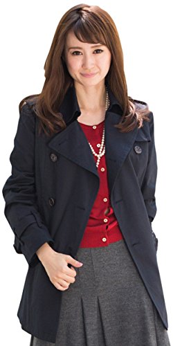 -. Title : トレンチコート レディース 人気 スプリングコート レインコート テフロン ライナー付き 綿100% レディースコート コート ロング ミドル ショート72cm丈 ネイビー15号-72㎝丈