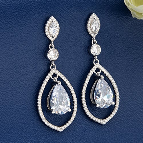 -. Title : EVER FAITH® 925 Sterling Silver CZ Birthstone Tear Drop Chandelier Earrings