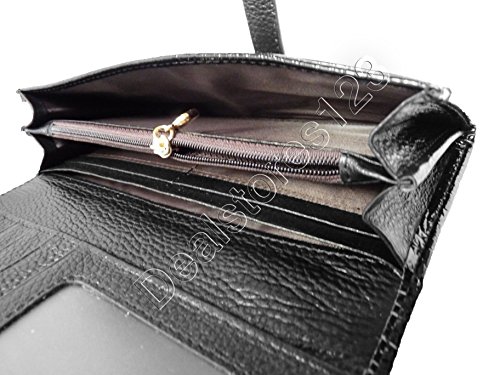 -. Feature : Dealstores123 - Glossy Film on Genuine Leather, Crocodile Pattern / 9 Credit Card Slots & 1 Inner ID Slot / 5 Full Length Pockets one which is Zippered / 2 Half Length Side Pockets / (7.5