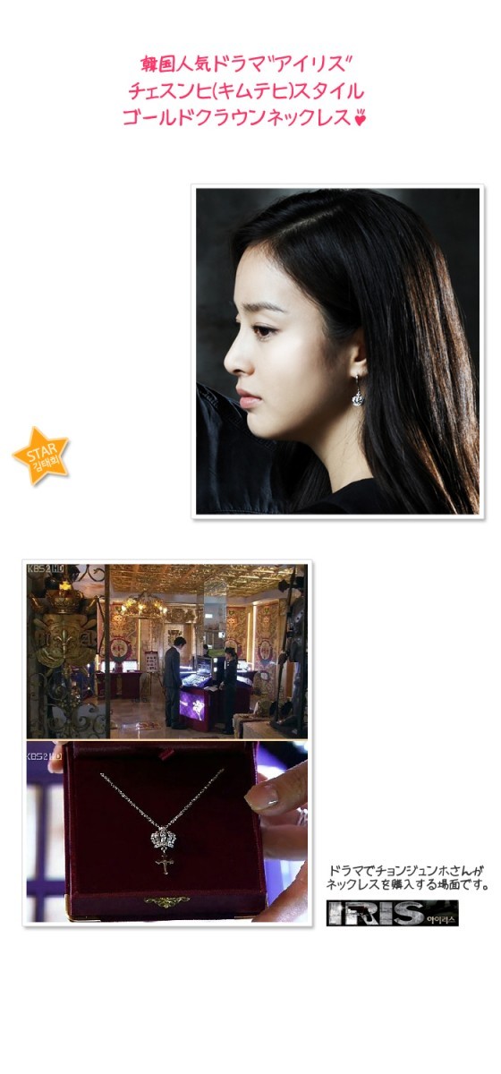 *韓国ドラマ アイリス(IRIS) チェ・スンヒ(キム・テヒ)スタイル ゴールドクラウンネックレス(14Kホワイトゴールド)*