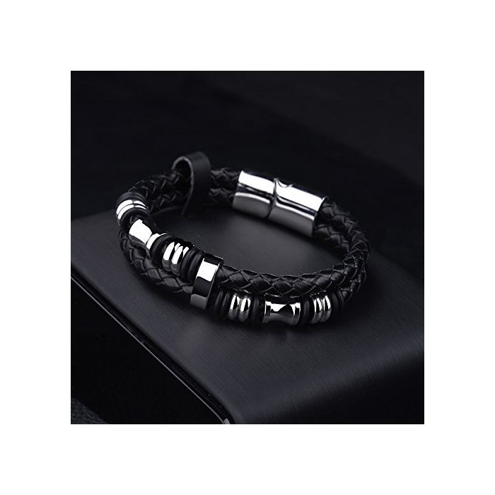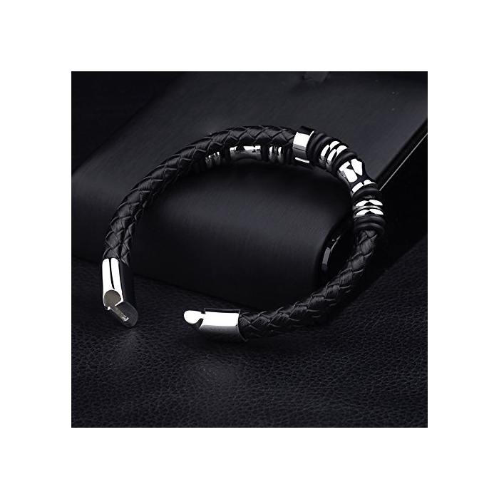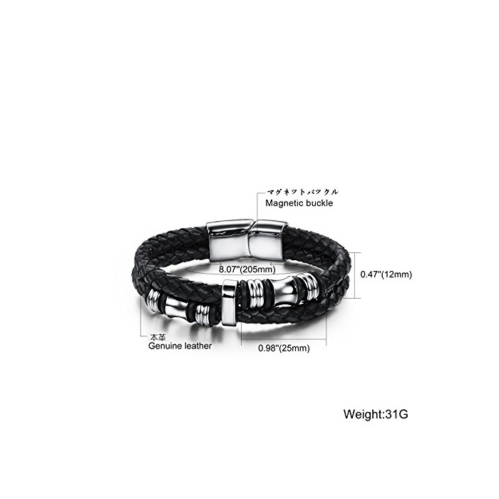 【레더 팔찌의 사이즈】길이:20.5cm;무게:31g;소재:써지 카루 스테인레스316L과 상질의 가죽 소재;남성분 에 추천입니다.