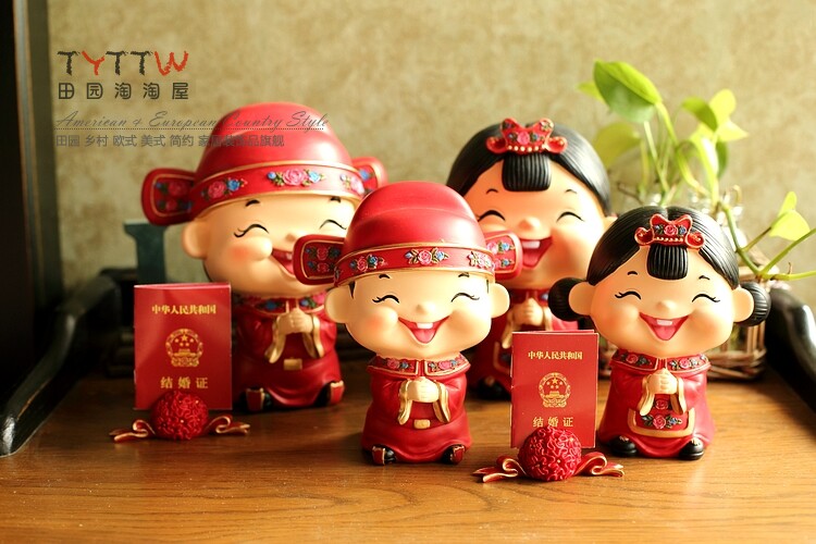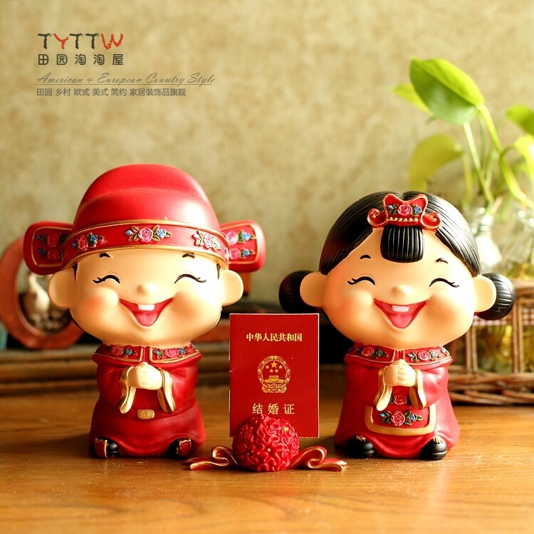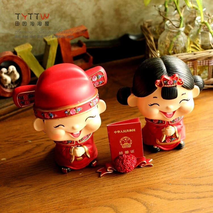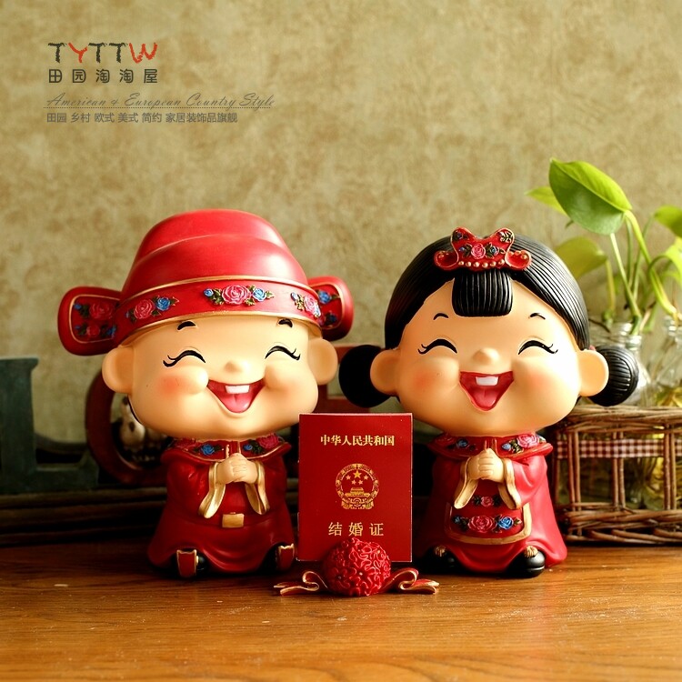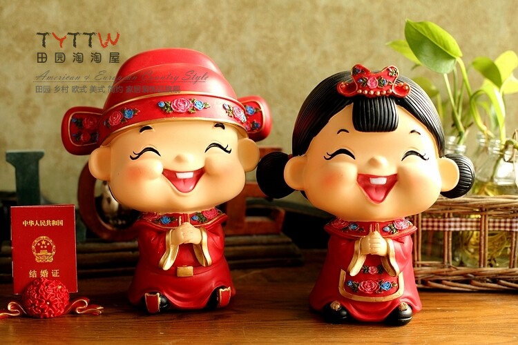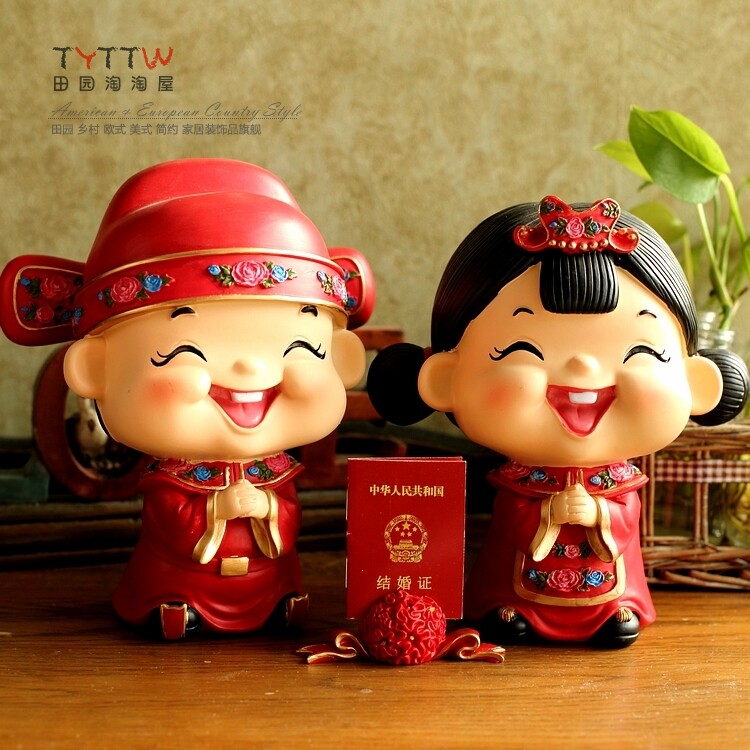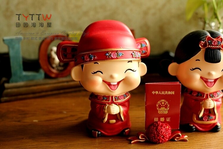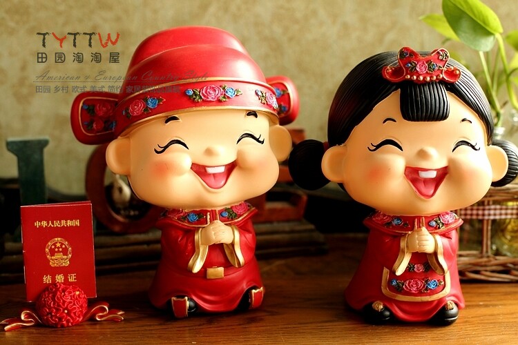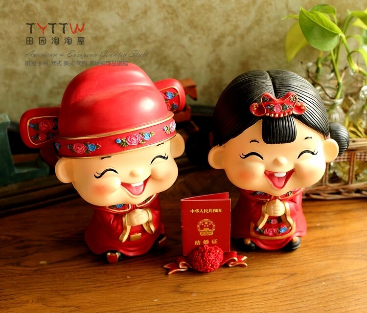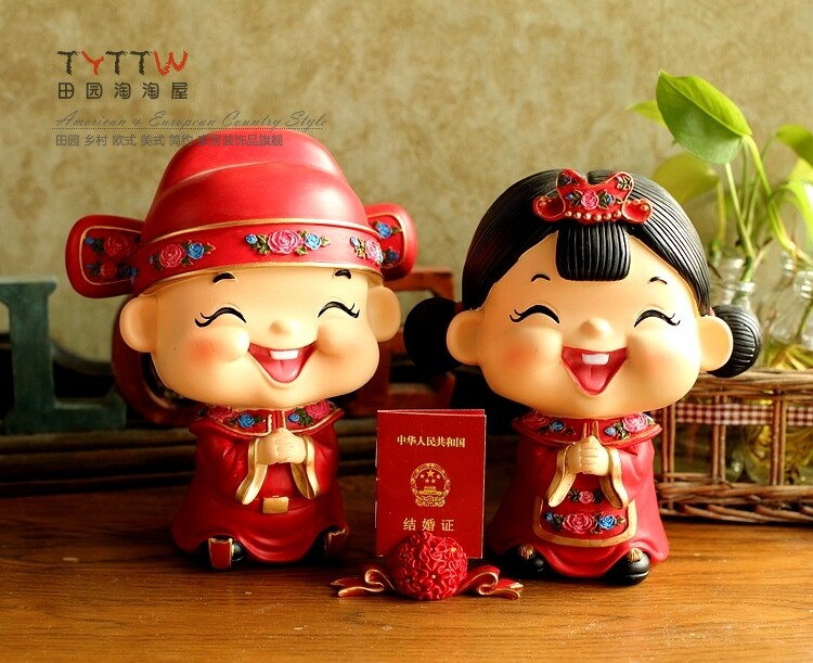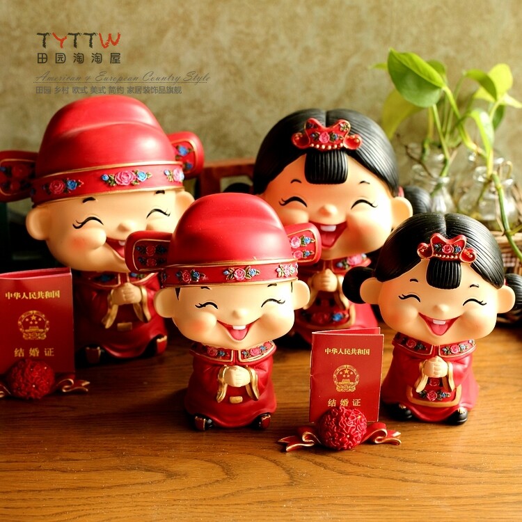 栩栩如生的表情中洋溢着甜蜜而幸福的微笑。流畅的线条勾勒出完美的造型和喜庆的神情,简直就是天造的地设。此款婚庆娃娃采用的是环保无毒树脂材料,人工彩绘加工而成。适合在家居摆饰,婚庆送礼,寓意着新婚夫妇甜甜蜜蜜,幸幸福福,和和美美。