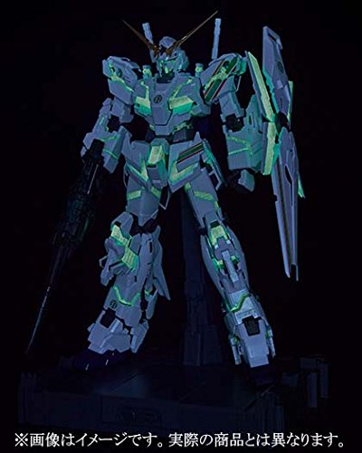 ユニコーンガンダムがPGで初の蓄光パーツを採用し登場! ■外装白部分、外装紺色部分:グロスインジェクション(艶有成形) ■サイコフレーム部:グリーンフレーム(ラメ入り)、蓄光成形 ■関節、武器、台座:通常グレー成形色 ■アンテナ:金塗装加工 ■新規マーキング:テトロンシール
