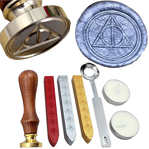 FQL Deathly Hallows Symbol Vintage Rosewood Wax Seal Stamp Set With Gold Red Silver Sticks