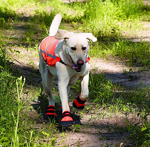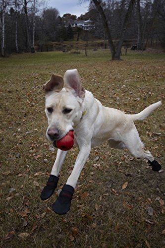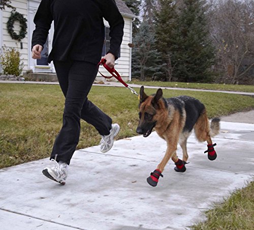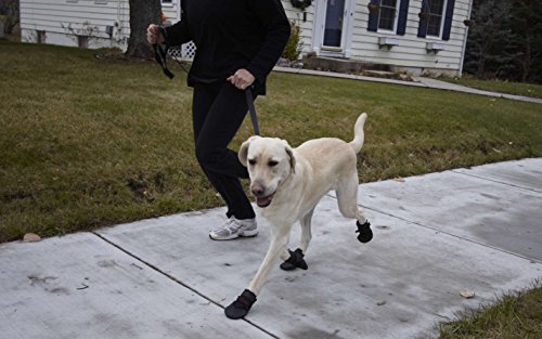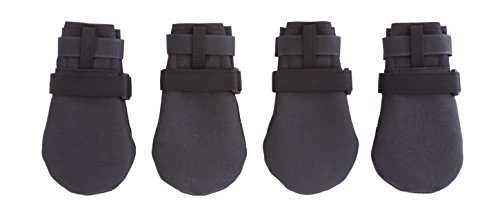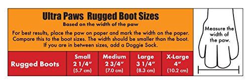 -. Feature : Measure width of paw for best fit (see photo/video instructions). The paw must be smaller than the boot size: Small 2 1/4"; Medium 2 3/4"; Large 3 1/4"; XLarge 4". (If in between sizes, add a Doggie Sock). / This is the boot for hunters, urban settings on asphalt or concrete, snow, and protection from salt in the winter. / Easy to put on - difficult to slip off, two Velcro® straps with slides fasten the boots. / Tough, water resistant 1000 denier nylon material with the top of the toe wrapped, sole is flexible, skid-resistant, recycled tire material. / The sole performs in wet and dry, hot and cold conditions and its recycled tire sole is suited for tougher conditions.