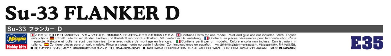 HASEGAWA 01565 1/72 SU-33 Flanker D