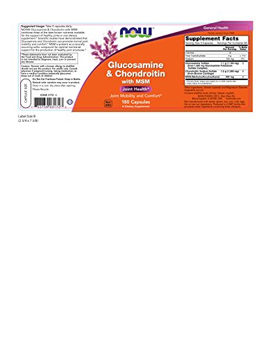 NOW® Glucosamine, Chondroitin & MSM combines three of the most popular and effective nutrients for supporting joint health in one dietary supplement. Our Glucosamine and Chondroitin are both 100% sulfate, the most studied form of these nutrients. In addition, we also include MSM (Methylsulphonylmethane), an organic form of sulfur found in all living organisms. Studies have shown that these nutrients provide dietary components that support healthy joint structure and function.*Feature