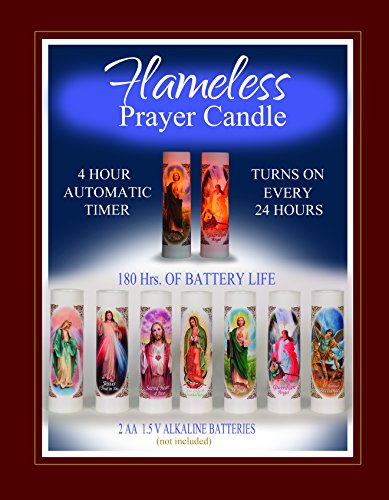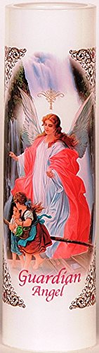 Guardian Angel | Angel de la Guardia | LED Flameless Prayer Candle with Automatic Timer | Veladora de Oracion sin Llama | English & Spanish | Novena Vigil Religious Gift Idea
