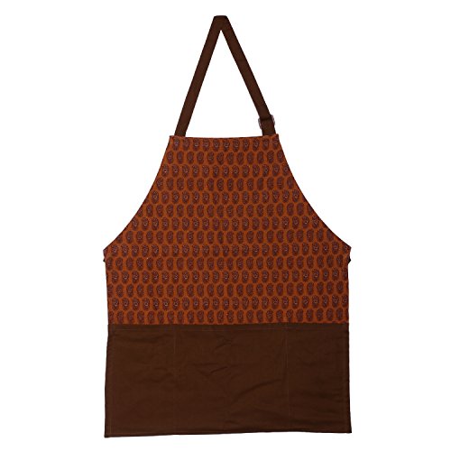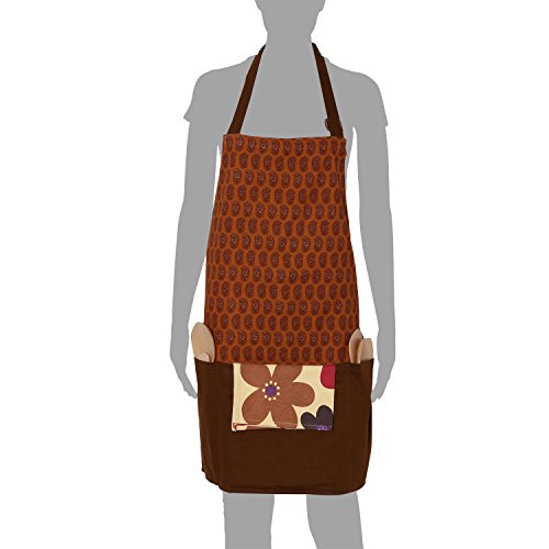 Digitally Printed Cotton Cooking Apron- Indian Printed Kitchen Apron for Women - 27 Inch x 22 Inch,Floral,Rust And Chocolate Brown