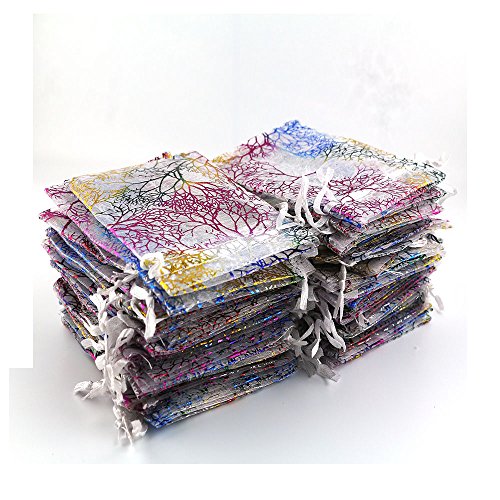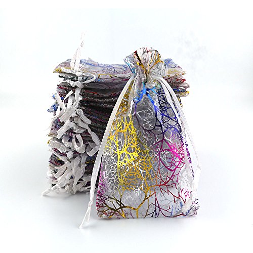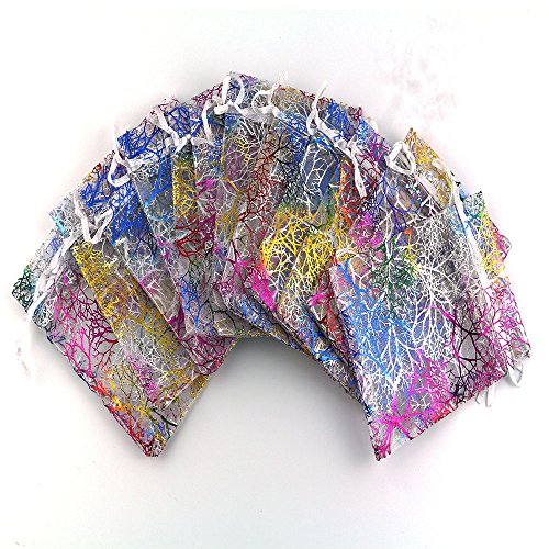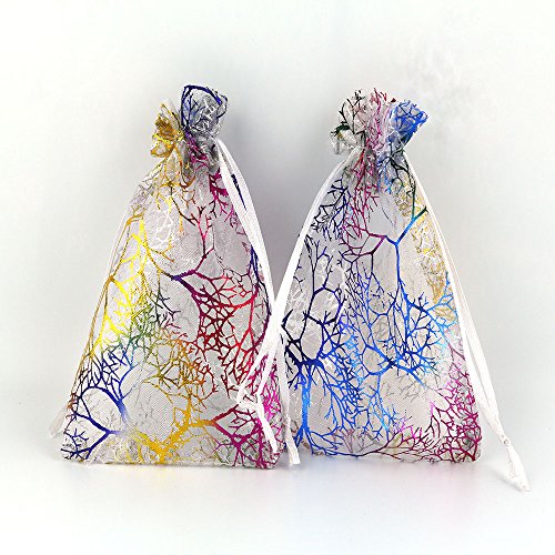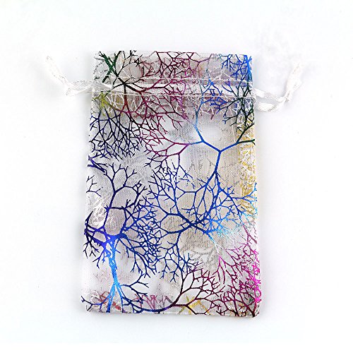 AOBZ Organza Bags, Gift Bags, 3.5 x 4.7 Inch 100 Packs Drawstring Wedding Party Favor Candy Bags Jewelry Pouches, , Coralline Pattern (White)