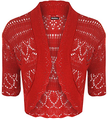 | WearAll Women's Crochet Knitted Short Sleeve Bolero |