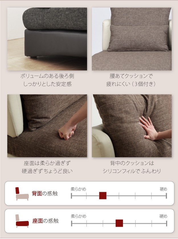 ●腰クッションサイズ:60x30cm(x3)