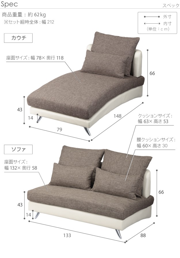 ●座面幅(ソファ部/カウチ部):133/79cm