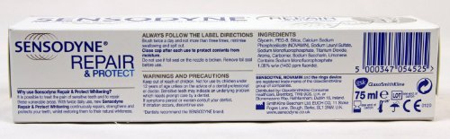 -. Binding : Health and Beauty -. Brand : Sensodyne -. EAN : 4742041002341 -. Feature : Sensodyne Repair and Protect Whitening Toothpaste / Weight of pack is 2.53 oz or 75 ml / You will get 2 packs -. Label : Sensodyne -. Manufacturer : Sensodyne -. ProductGroup : Beauty -. ProductTypeName : HEALTH_PERSONAL_CARE -. Publisher : Sensodyne -. Studio : Sensodyne -. Title : Sensodyne Repair and Protect Whitening Toothpaste x 2 boxs.