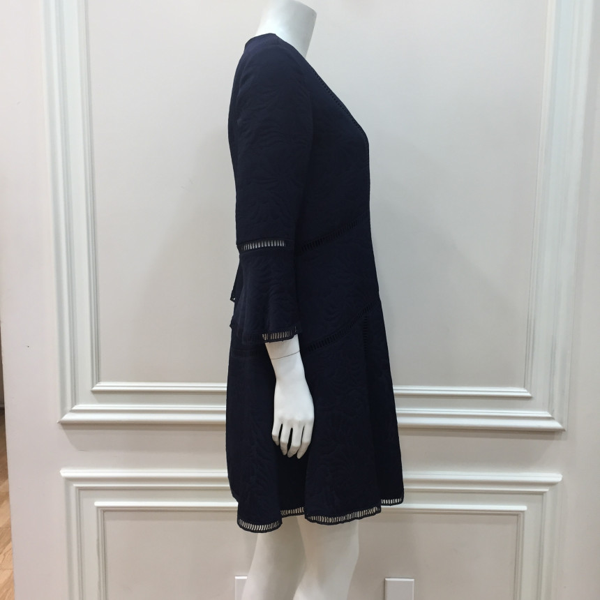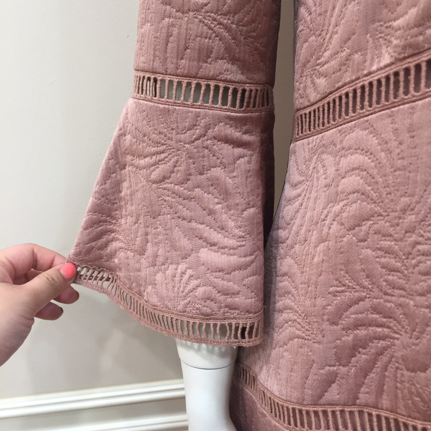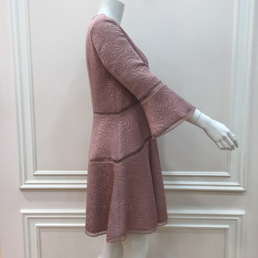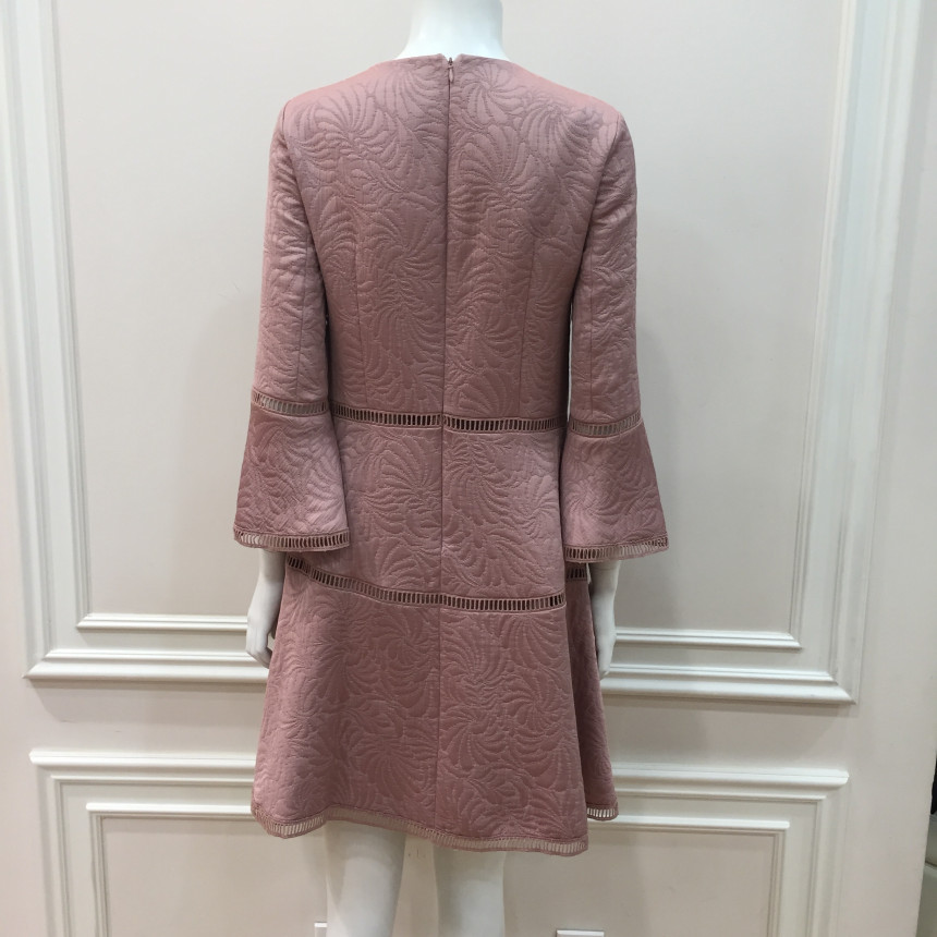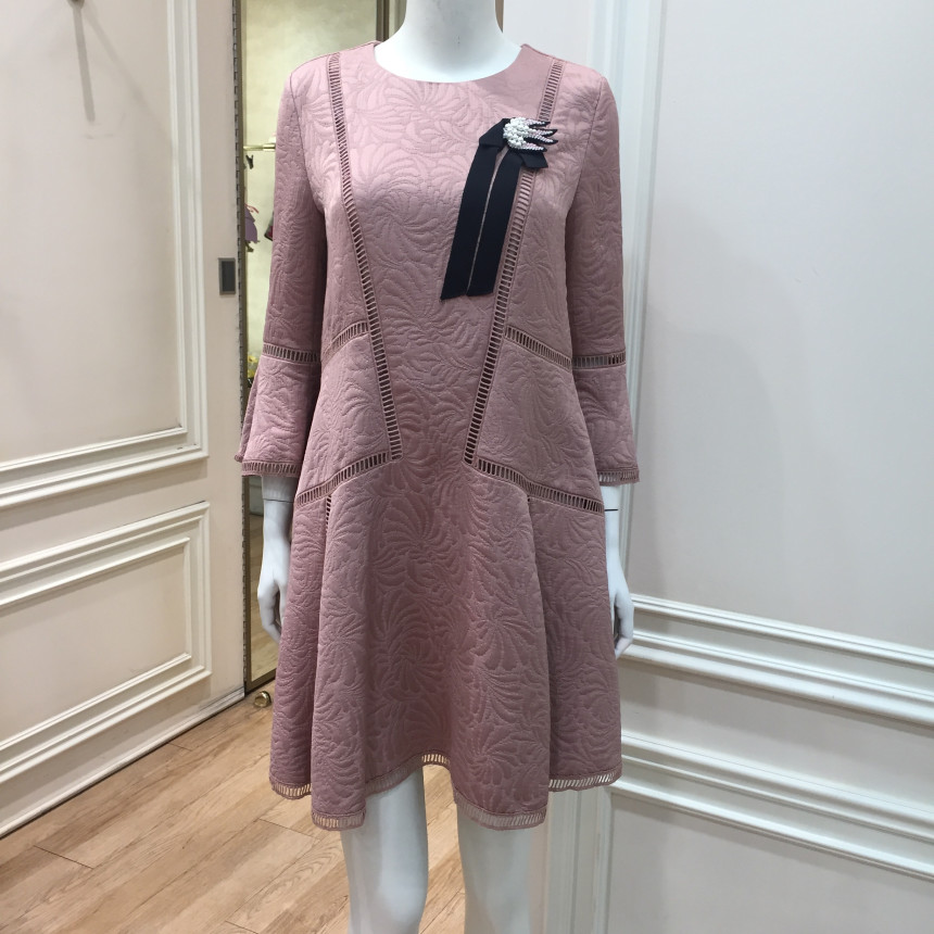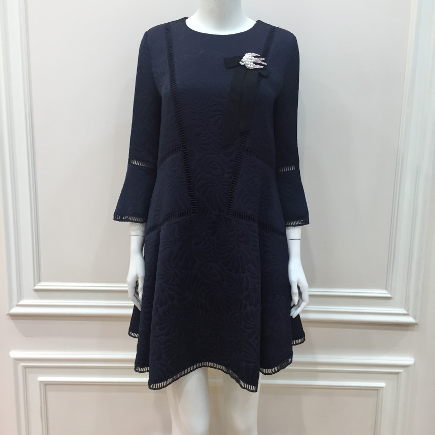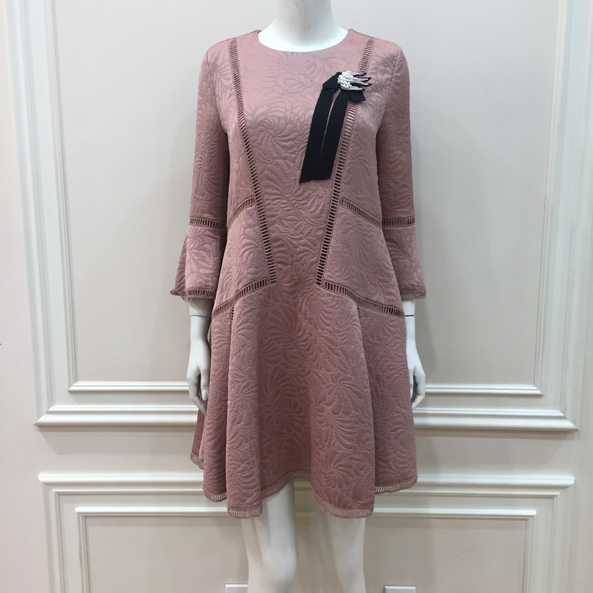 몸판 절개선과 소매, 밑단에 사다리 레이스 디테일이 있는편한 실루엣의 자카드 원피스입니다. 여성스러운 브로치로 포인트를 주었습니다.이월상품으로 브로치는 재고 소진시 불포함 될 수 있으니 구매시 참고바랍니다.