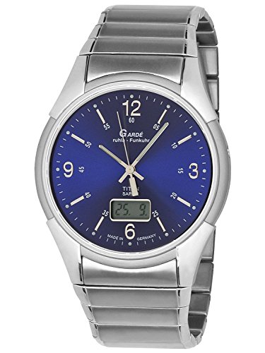 Made in Germany, aus Ruhla/Thüringen, Titan-Gehäuse, Gehäuseboden mit Mineralglas, Saphirglas, wasserdicht bis 5 bar, integriertes Titan-Gliederband, Faltschließe mit Sicherheitsdrücker, Funkuhr-Modul für den Empfang des DCF77-Senders, automatische Umstellung von Sommer- und Winterzeit, Sekunde und Datum im LCD, Sunray-Zifferblatt, Zeiger und Markierungen mit Leuchtmasse, zentraler SekundenzeigerFeature