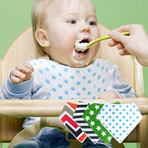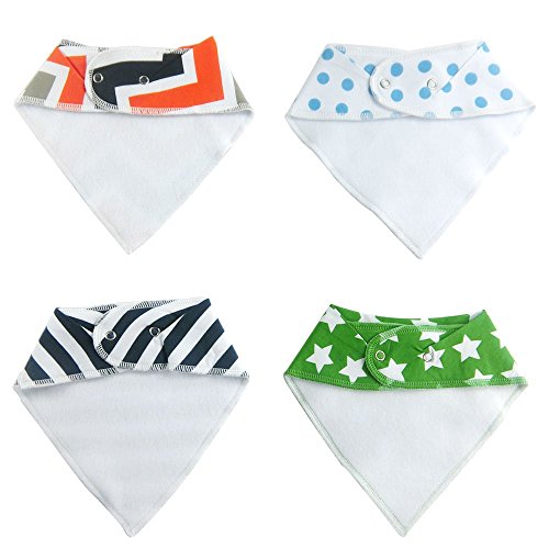Baby Bandana Drool Bibs For Boys/Girls, Pure/Absorbent/Organic Cotton Burp Cloths, Double Cloth, Set of 4, 4 Kinds of Patterns