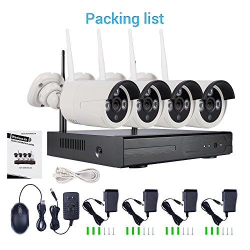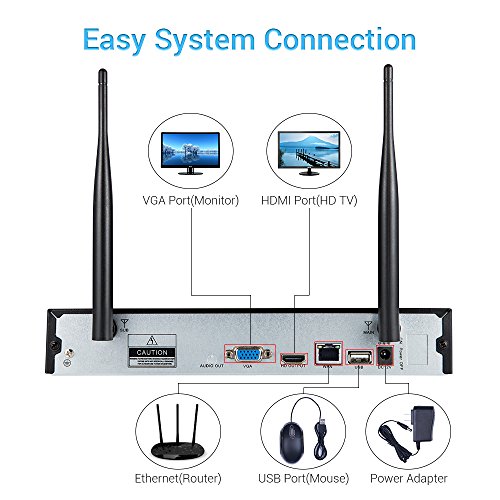 -. Title : Wireless Camera Security System 1080p 4CH HDMI NVR + 4 Pcs 720P(1.0MP) WiFi CCTV Bullet Cameras HD Night Vision Surveillance Outdoor Indoor Waterproof Easy Remote Access Night Vision