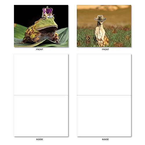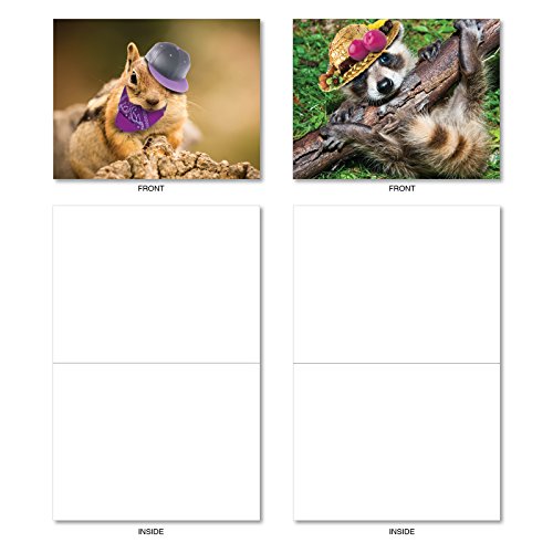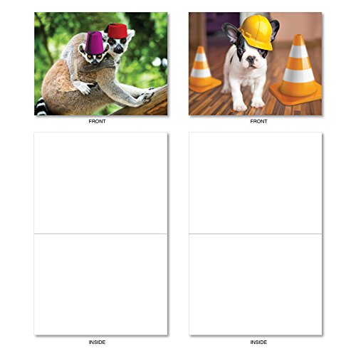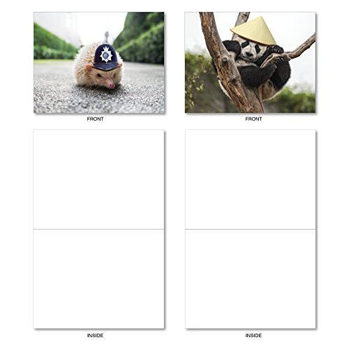 M6470OCB Capped Creatures: 10 Assorted Blank All-Occasion Note Cards Featuring Sweet and Sassy Animals Showing Off Their Stylish Chapeaus, w/White Envelopes.