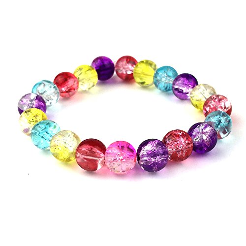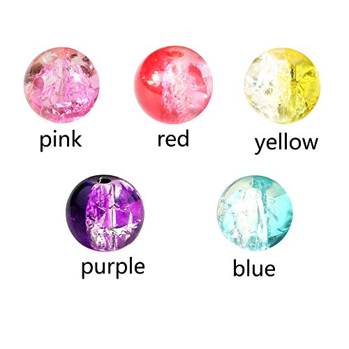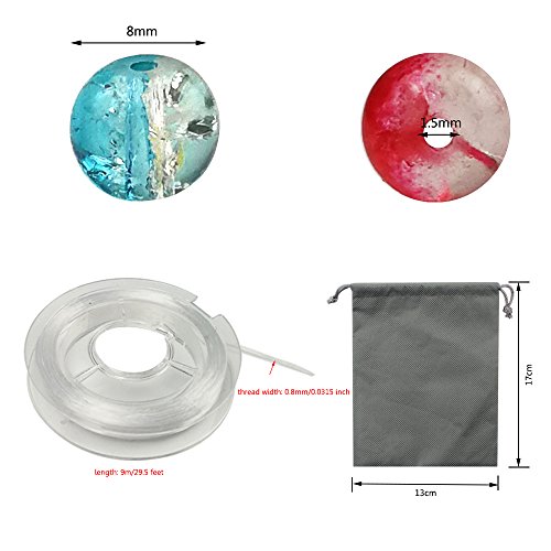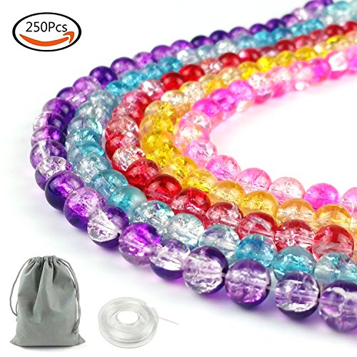 JPSOR 250pcs 8mm Round Cracked Glass Beads for Jewelry Making, with Thread and Pouch