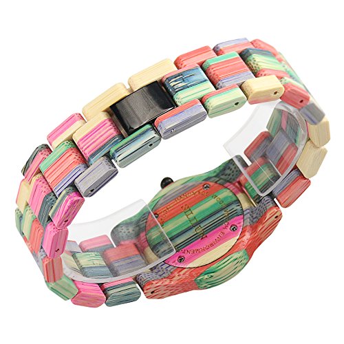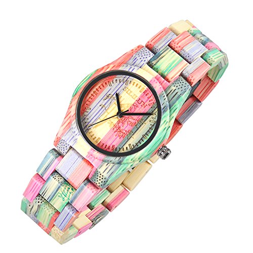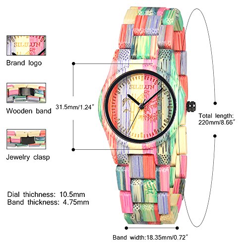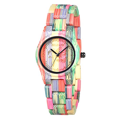 SILILUN Women Bamboo Watch Colorful Lady Wood Wrist Watch Light Weight Handmade Wooden Watches