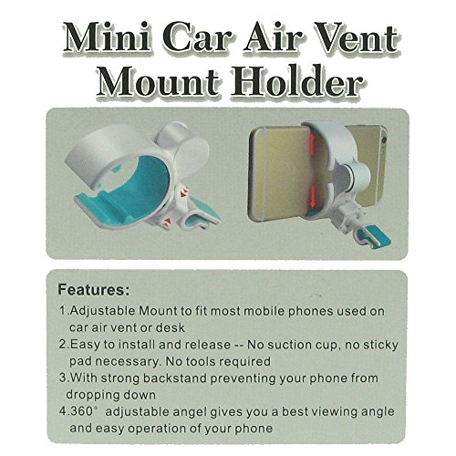-. Feature : Adjustable Mount to fit most cell phones used on car air vent or desk. / Easy to to install and release -- No suction cup, no sticky pad necessary. No tools required / With strong magnetic backstand preventing your phone from dropping down / 360° adjustable angle gives you a best view angle and easy operation of your phone / TECHNICAL DETAILS: fit 1.36(inch) ˜ 3.90(inch) width Cellphones/Smartphones; Weight: 60g; Color: Black