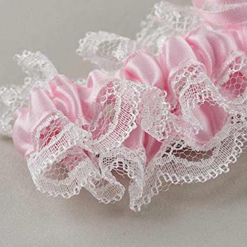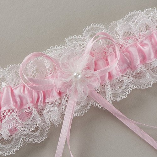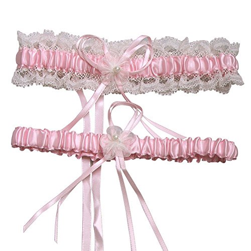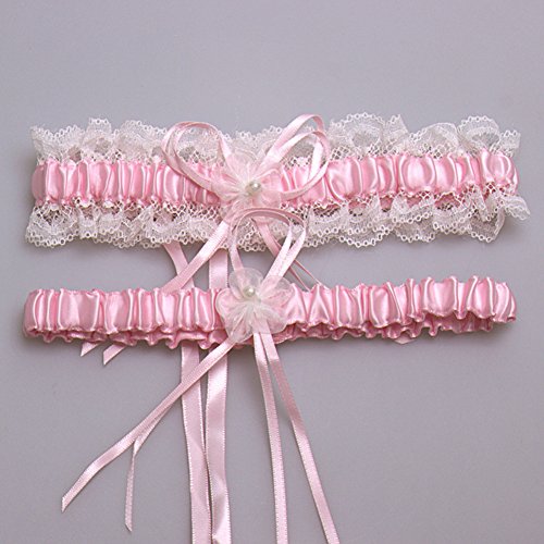 Women's Lace Wedding Garters Belt set for Bride Satin with Ribbon Tulle Flowers Bead Pink