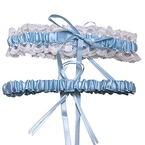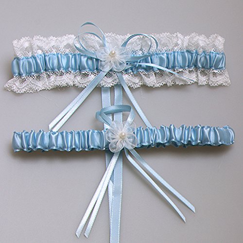 Women's Lace Wedding Garters Belt set for Bride Satin with Ribbon Tulle Flowers Bead Blue