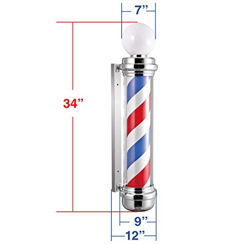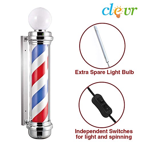 34" Barbershop Barber Pole Globe Lamp USA Stripes Spinning Man Cave Sign Extra Bulb