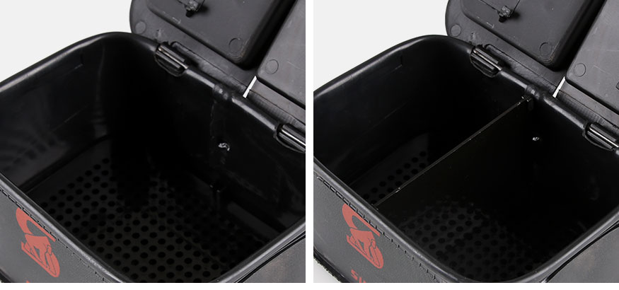 내부 칸막이로 2가지 종류의 미끼를 나누어 보관 가능