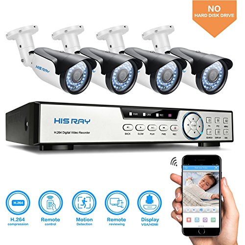 HISRAY security system includes 8CH 1080P HD hybrid CVI/TVI/AHD/Analog/IP CCTV DVR and 4PCS bullet 1080P cameras. **NO Include Hard Disk**you need to install Hard Drive for record &Playback;HDMI and VGA output
